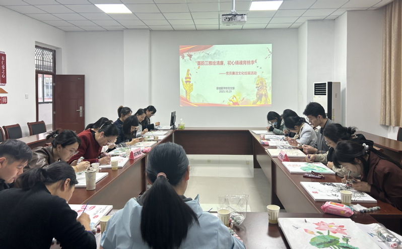 为深化党员廉洁思想认识,营造清廉文化氛围,激发党组织活力,10月29日,基础医学部党支部在7-C405举办“墨韵三雅绘清廉,初心铸魂育桃李”党员廉洁文化绘画活动,全体党员教师积极参与,以艺术之力传递廉洁正能量。