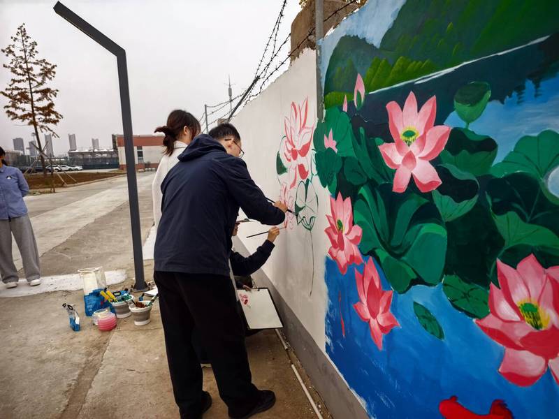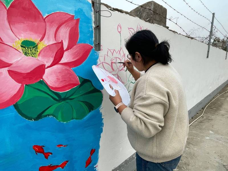活动选址于校园北侧的10米长廊墙面,支部成员精心设计莲韵清风主题。绘画过程中,党员们分工协作,有的勾勒轮廓,有的调配颜料,有的填充细节,将出淤泥而不染的莲花与现代廉洁标语巧妙融合。经过2小时的连续创作,原本单调的白墙焕然一新,成为校园里一道亮丽的廉洁教育风景线。